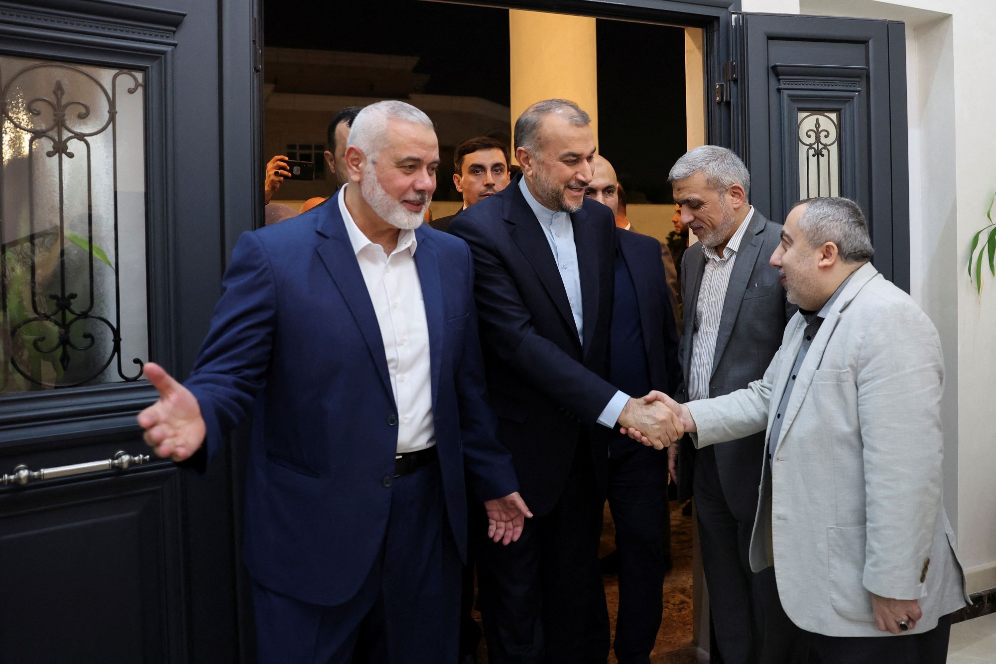 Ο Υπουργός Εξωτερικών του Ιράν Hossein Amir Abdollahian συναντά τον κορυφαίο ηγέτη της παλαιστινιακής οργάνωσης Χαμάς, Ισμαήλ Χανίγιε στην Ντόχα, Κατάρ, 20 Δεκεμβρίου 2023. (REUTERS).