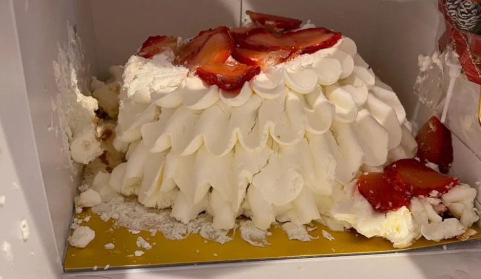 Αντ’ αυτού, παρέλαβαν ταλαιπωρημένες, σχεδόν διαλυμένες τούρτες και οι αναρτήσεις των απογοητευμένων πελατών, με την αντίστοιχη φωτογραφία, άρχισαν να πλημμυρίζουν τα μέσα κοινωνικής δικτύωσης.