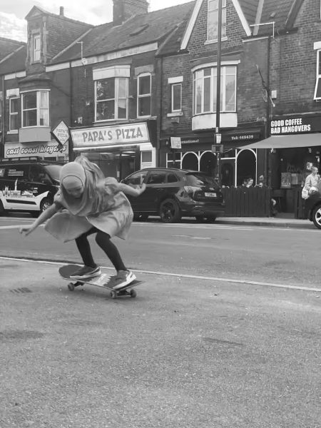 «Το 2019 άρχισα να καταγράφω τα οικεία πρόσωπα των ανθρώπων που συχνάζουν στα μπαρ και τις επιχειρήσεις γύρω από την περιοχή Princes Ave του Hull. Μια μέρα, τρία κορίτσια, όλες αδελφές, πέρασαν από μπροστά μου πάνω σε σκέιτμπορντ σε σειρά ύψους με τα χιτζάμπ τους να ανεμίζουν στον αέρα.