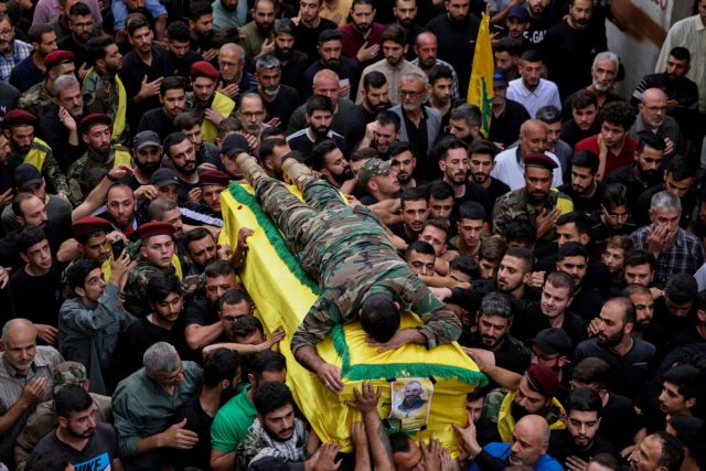 Ο ισραηλινός στρατός καταρτίζει σχεδιασμούς για την κλιμάκωση της σύγκρουσης με το λιβανικό σιιτικό ένοπλο κίνημα Χεζμπολάχ, σύμμαχο του Ιράν και της Χαμάς (στη φωτογραφία του Reuters/Zohra Bensemra, επάνω, στιγμιότυπο από κηδεία μαχητή της Χεζμπολάχ που σκοτώθηκε από ισραηλινά πυρά στον νότιο Λίβανο).