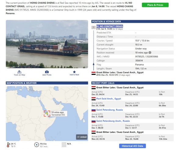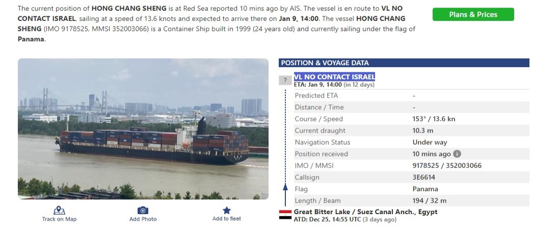 Είναι εμφανές πως το πλοίο HONG CHANG SHENG εμφάνισε απόψε το σήμα VL NO CONTACT ISRAEL για να ειδοποιήσει τους Χούθι πως δεν σχετίζεται με το Ισραήλ.