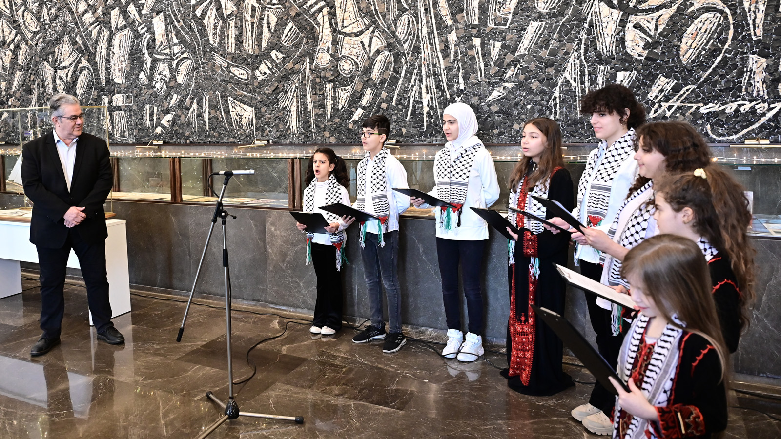 Ο κ. Κουτσούμπας χειροκροτεί τα παιδιά της χορωδίας της Παλαιστινιακής Παροικίας Ελλάδας