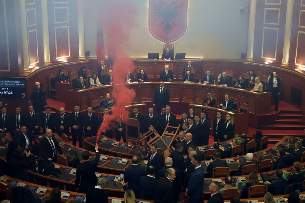 Θυμίζουμε ότι, όταν νωρίτερα τον Δεκέμβριο ήρθη η ασυλία του Σαλί Μπερίσα, στο αλβανικό κοινοβούλιο επικράτησε χάος, με τους βουλευτές που υποστηρίζουν τον ίδιο ν’ ανάβουν καπνογόνα μες στην αίθουσα του κοινοβουλίου.