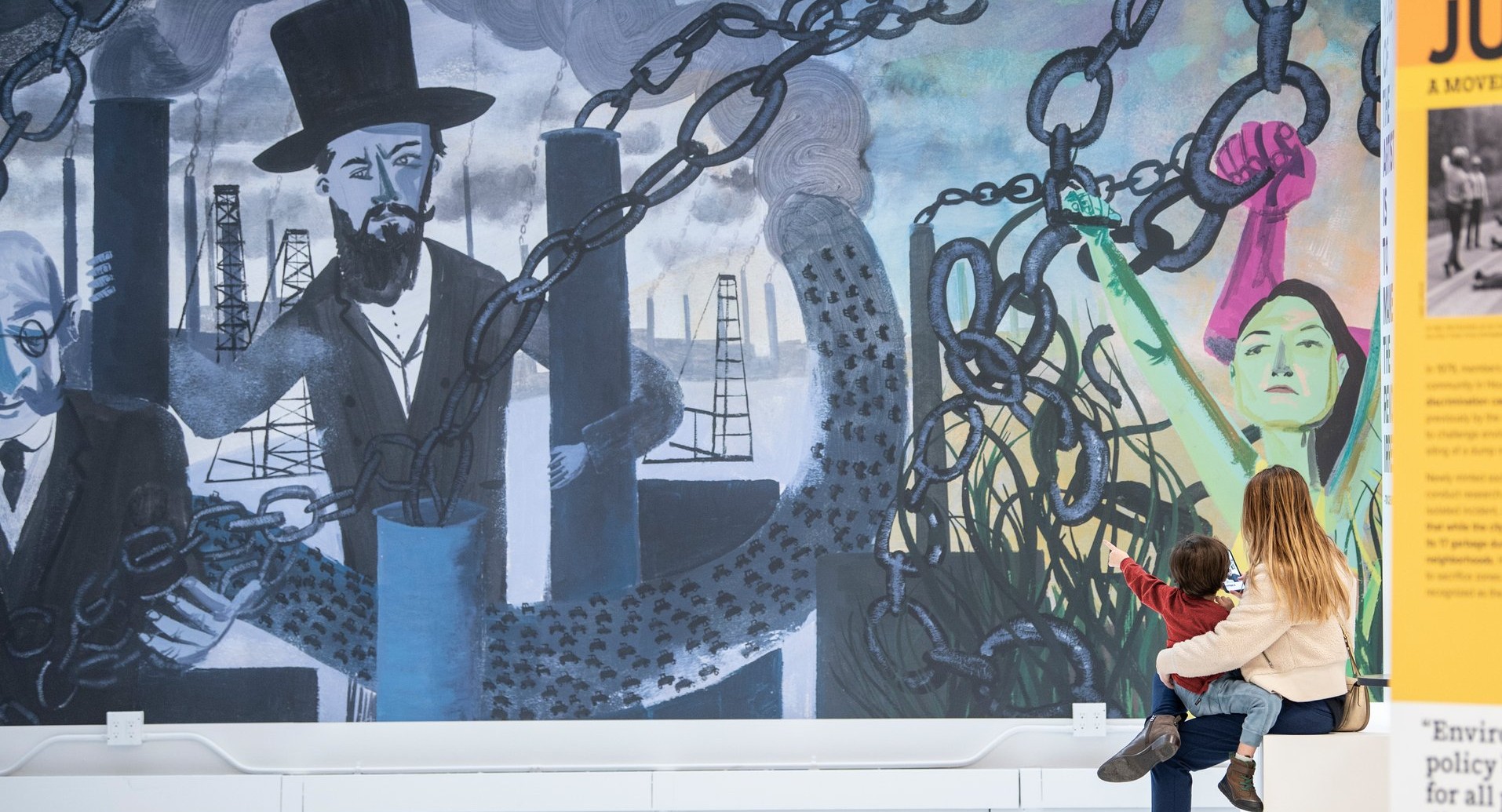 Ενώ εκείνος και η μητέρα του διασκέδαζαν διαβάζοντας ένα αντίγραφο του βιβλίου «Το μαγικό σχολικό λεωφορείο και η κλιματική πρόκληση» σε έναν από τους δύο χώρους ανάγνωσης του μουσείου, η Lee συζήτησε για την εν λόγω πρόκληση.