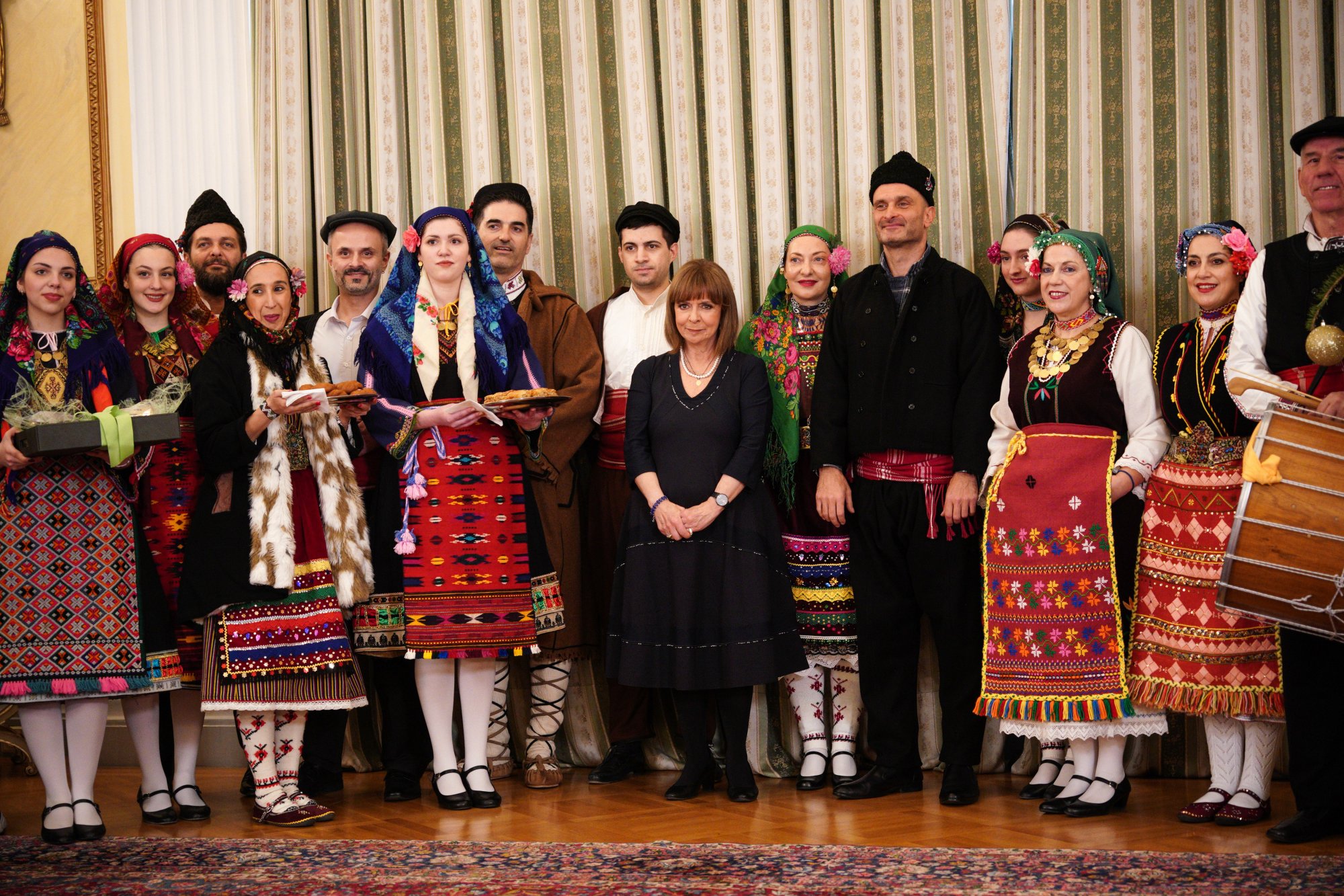 Ακόμη, κάλαντα είπαν οι συντοπίτες της Προέδρου, από την Πανθρακική Ομοσπονδία Νότιας Ελλάδας, αλλά και η χορωδία των Αστέγων του Ομίλου για την UNESCO Πειραιώς και Νήσων -μαζί τους ο βουλευτής Επικρατείας Γιώργος Σταμάτης, ο οποίος έχει διατελέσει γραμματέας Κοινωνικής Αλληλεγγύης της Νέας Δημοκρατίας.