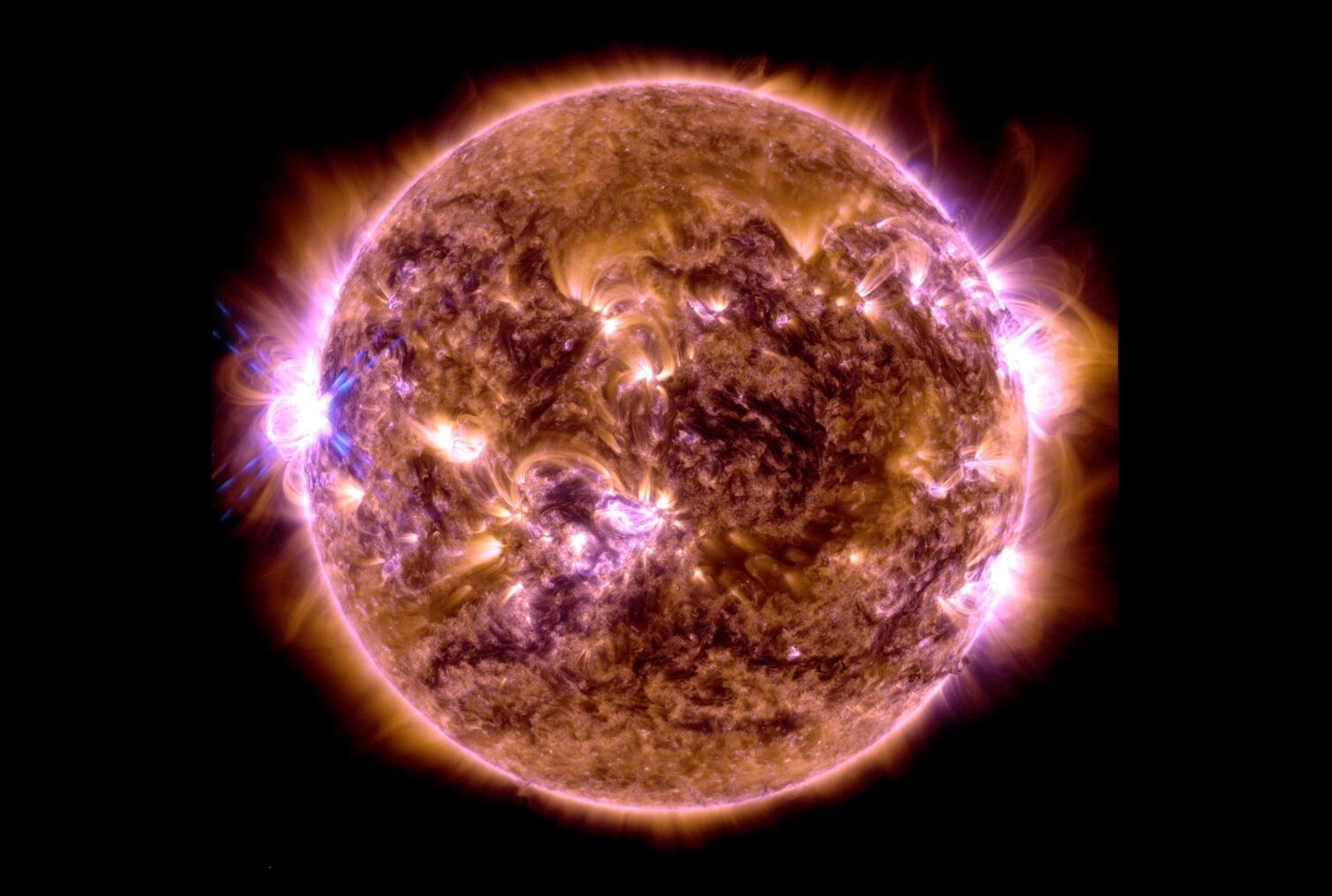 H έκλαμψη διακρίνεται στα αριστερά αυτής της εικόνας από τον δορυφόρο SDO της NASA (NASA/SDO)