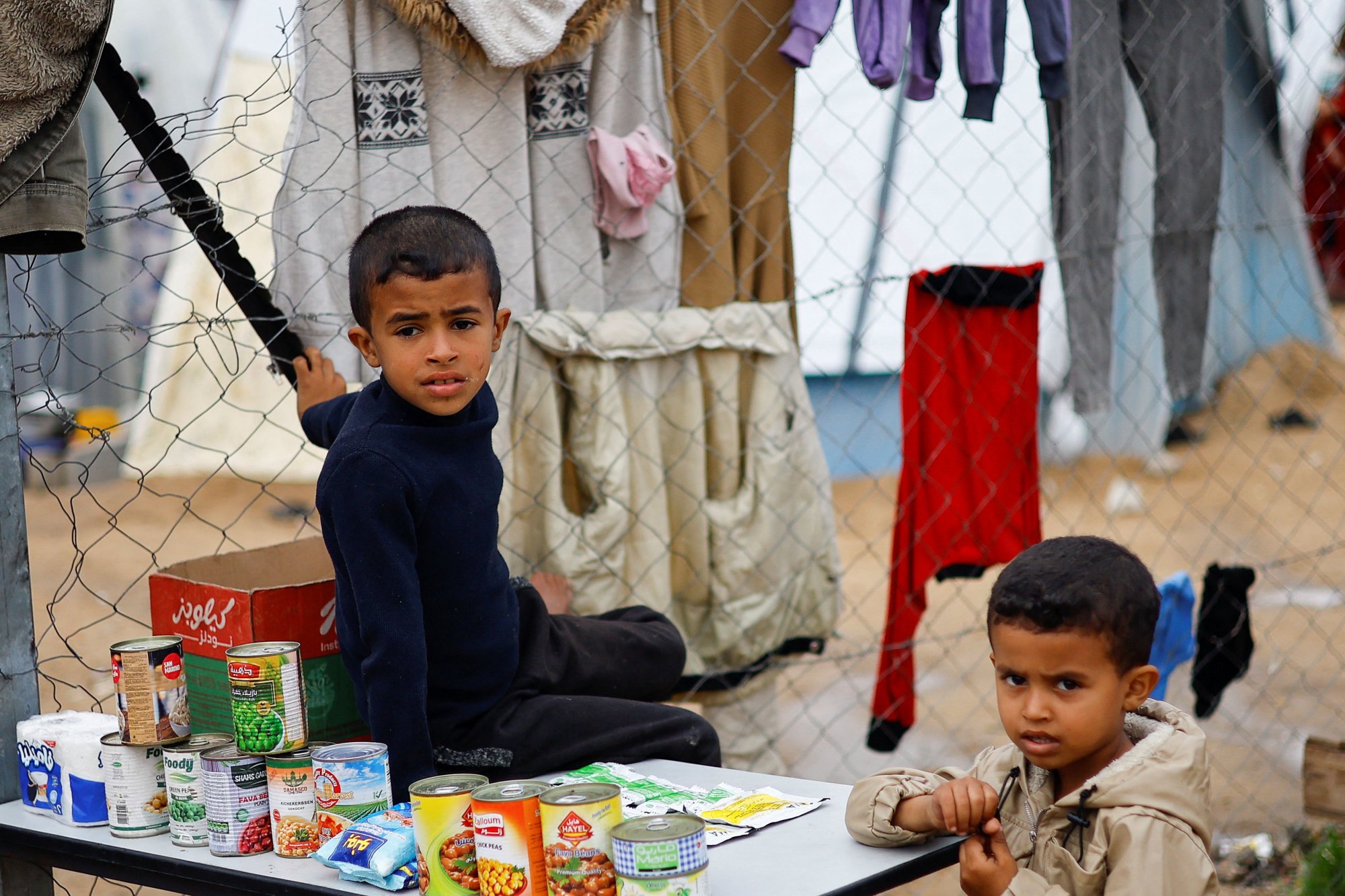 Παιδιά που εγκατέλειψαν τα σπίτια τους λόγω των ισραηλινών επιθέσεων, βρίσκουν καταφύγιο σε έναν καταυλισμό στη Ράφα, στη νότια Λωρίδα της Γάζας/REUTERS/Ibraheem Abu Mustafa