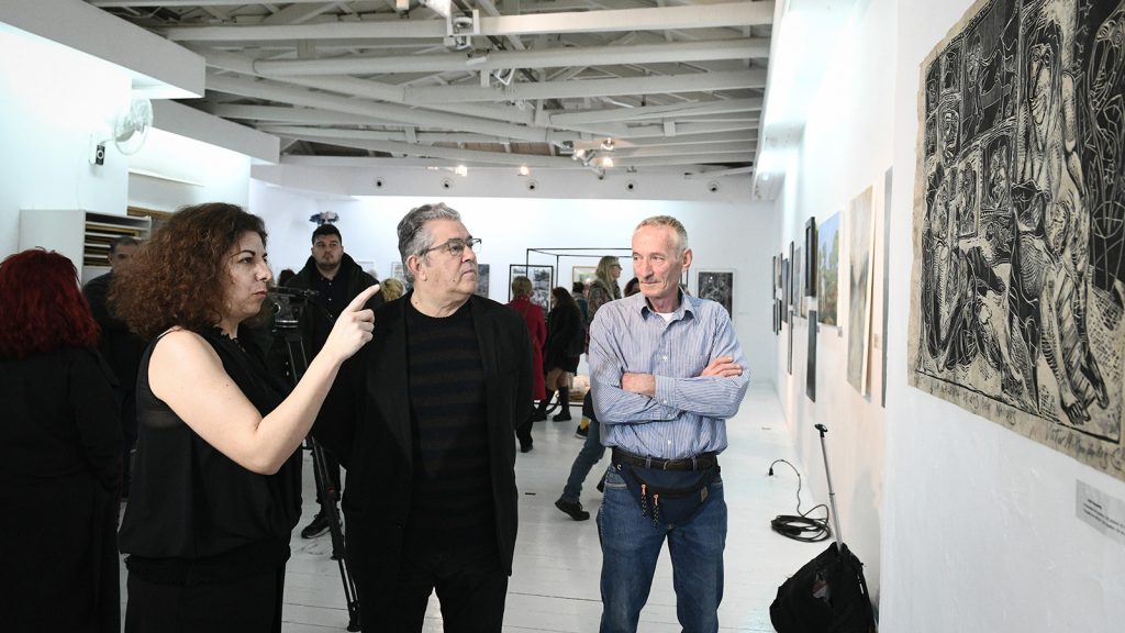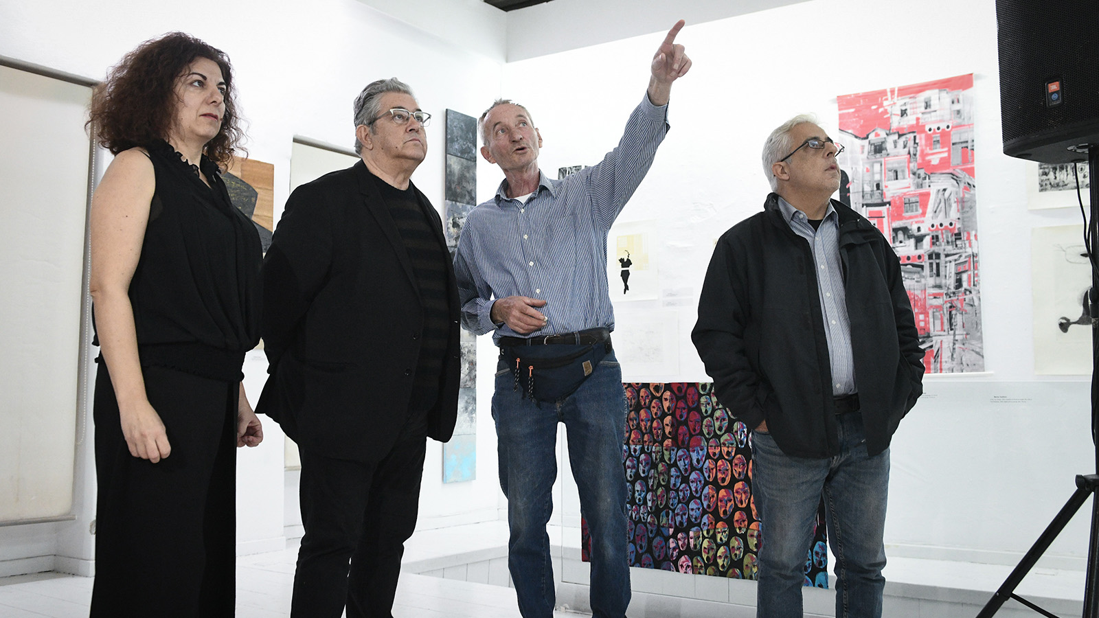 Στα εγκαίνια της ομαδικής έκθεσης «Κάτω από τον ίδιο ουρανό» παραβρέθηκε το βράδυ της Πέμπτης 4 Ιανουαρίου ο γενικός γραμματέας της Κεντρικής Επιτροπής του ΚΚΕ Δημήτρης Κουτσούμπας