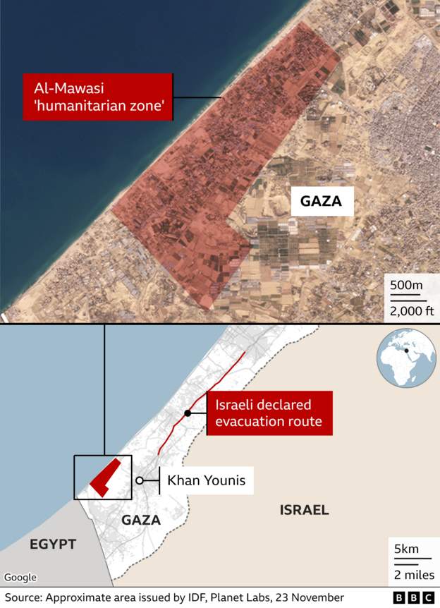 Στη δυτική πλευρά, κανονιοφόροι πυροβολούν προς τον παραλιακό δρόμο. Αυτός είναι ο δρόμος που έχει ειδοποιηθεί ο κόσμος να ακολουθήσει αν μετακινείται από το κεντρικό τμήμα του Khan Younis προς την πόλη Rafah.