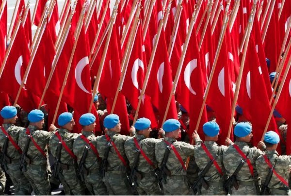 Τούρκοι στρατιώτες κρατούν τουρκικές σημαίες κατά τη διάρκεια παρέλασης για την 89η επέτειο της Ημέρας της Νίκης, στην Αγκυρα στις 30 Αυγούστου 2011 (φωτογραφία Reuters/Umit Bektas)