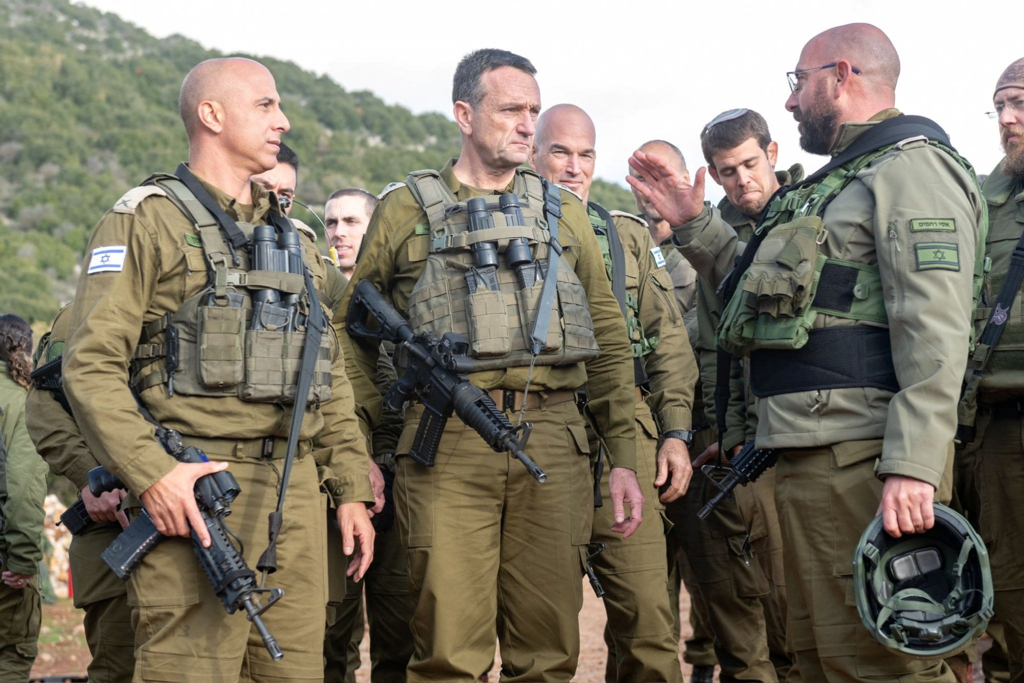 Ο αρχηγός του Γενικού Επιτελείου Στρατού Herzi Halevi, μαζί με Ισραηλινούς στρατιωτικούς, σε μια τοποθεσία που αναφέρεται ως το βόρειο Ισραήλ, σε αυτή τη φωτογραφία που δημοσιεύθηκε στις 3 Ιανουαρίου 2024