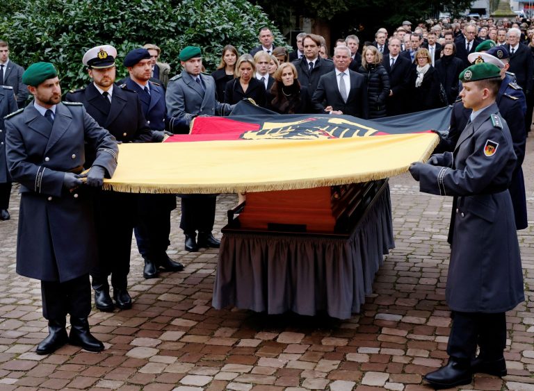 Μετά το τέλος της τελετής, στρατιωτικοί της Μπούντεσβερ μετέφεραν στους ώμους τους το φέρετρό του καλυμμένο με τη γερμανική σημαία, προτού η πομπή πάρει τον δρόμο για το νεκροταφείο της πόλης.