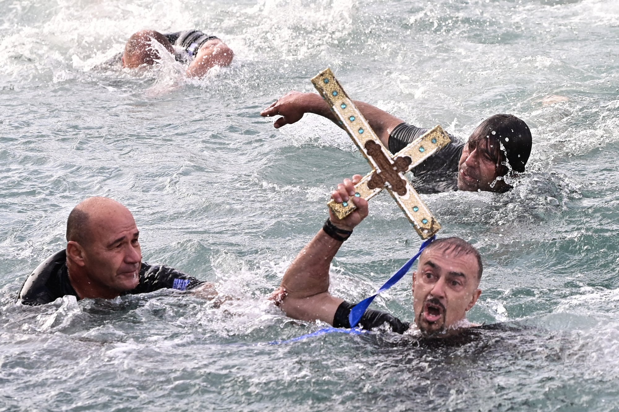 14 βατραχάνθρωποι βούτηξαν στα κρύα νερά για να πιάσουν τον Σταυρό