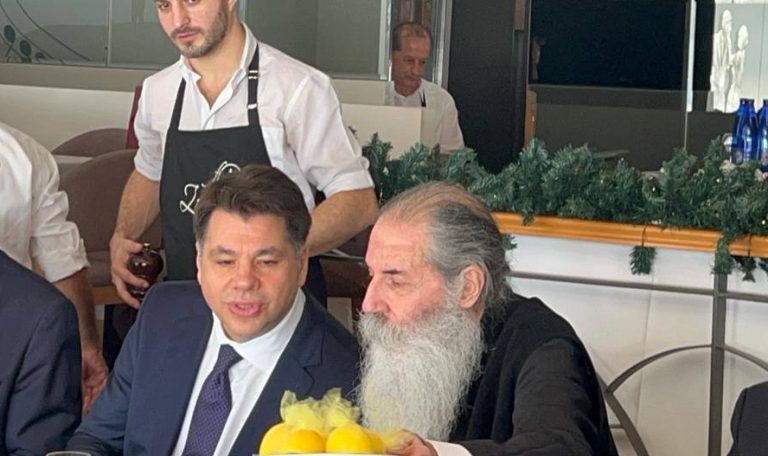 Στο γεύμα που παρέθεσε ο Μητροπολίτης Πειραιώς & Φαλήρου κ. Σεραφείμ παρευρέθηκε και ο πρέσβης των ΗΠΑ στην Ελλάδα Τζορτζ Τσούνης, στον οποίο ο Σεβασμιότατος δώρισε εικόνα της Παναγίας.