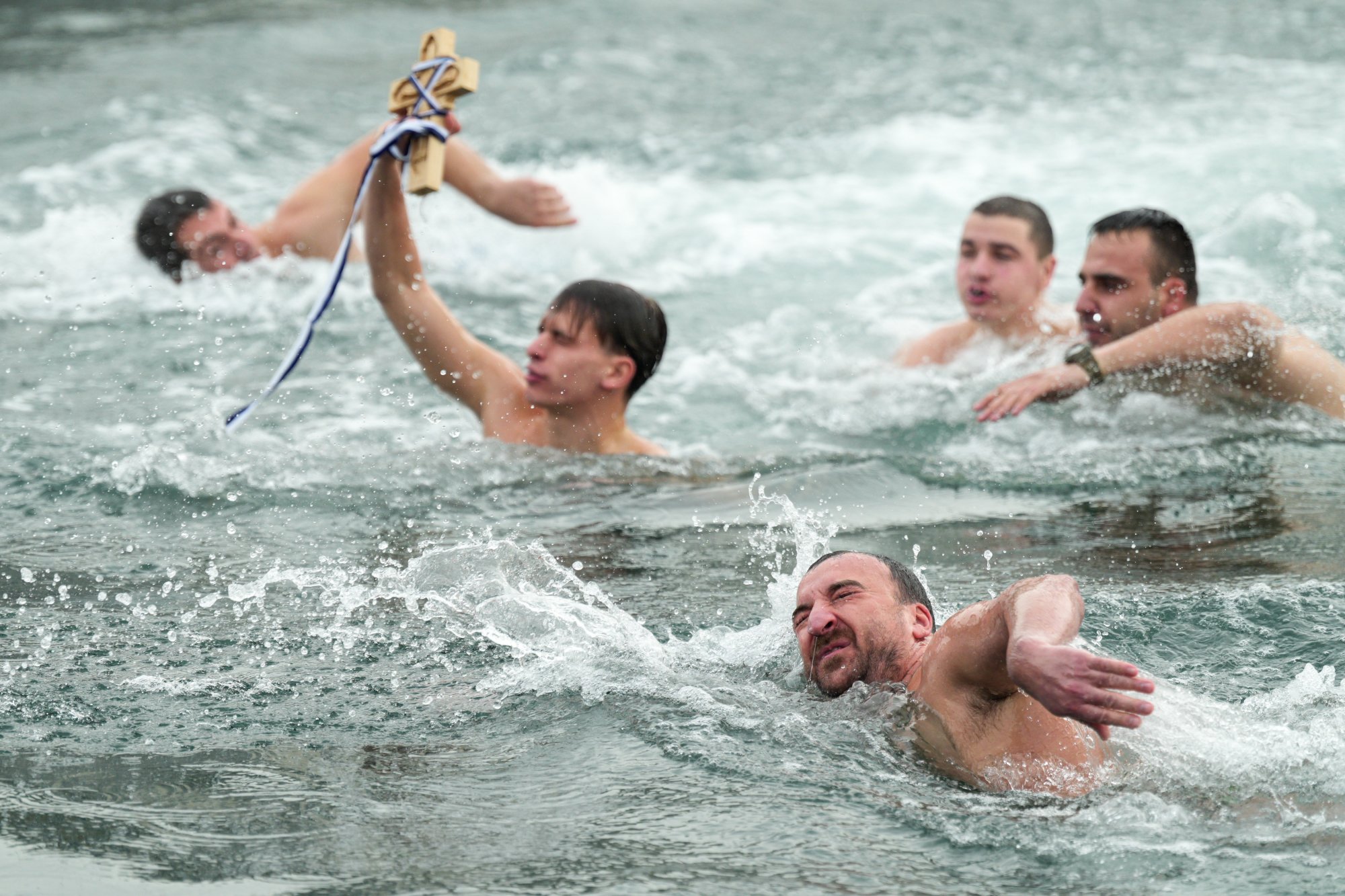 Αρκετοί ήταν οι τολμηροί που και φέτος έπεσαν στα παγωμένα νερά προκειμένου να ανασύρουν τον Τίμιο Σταυρό.