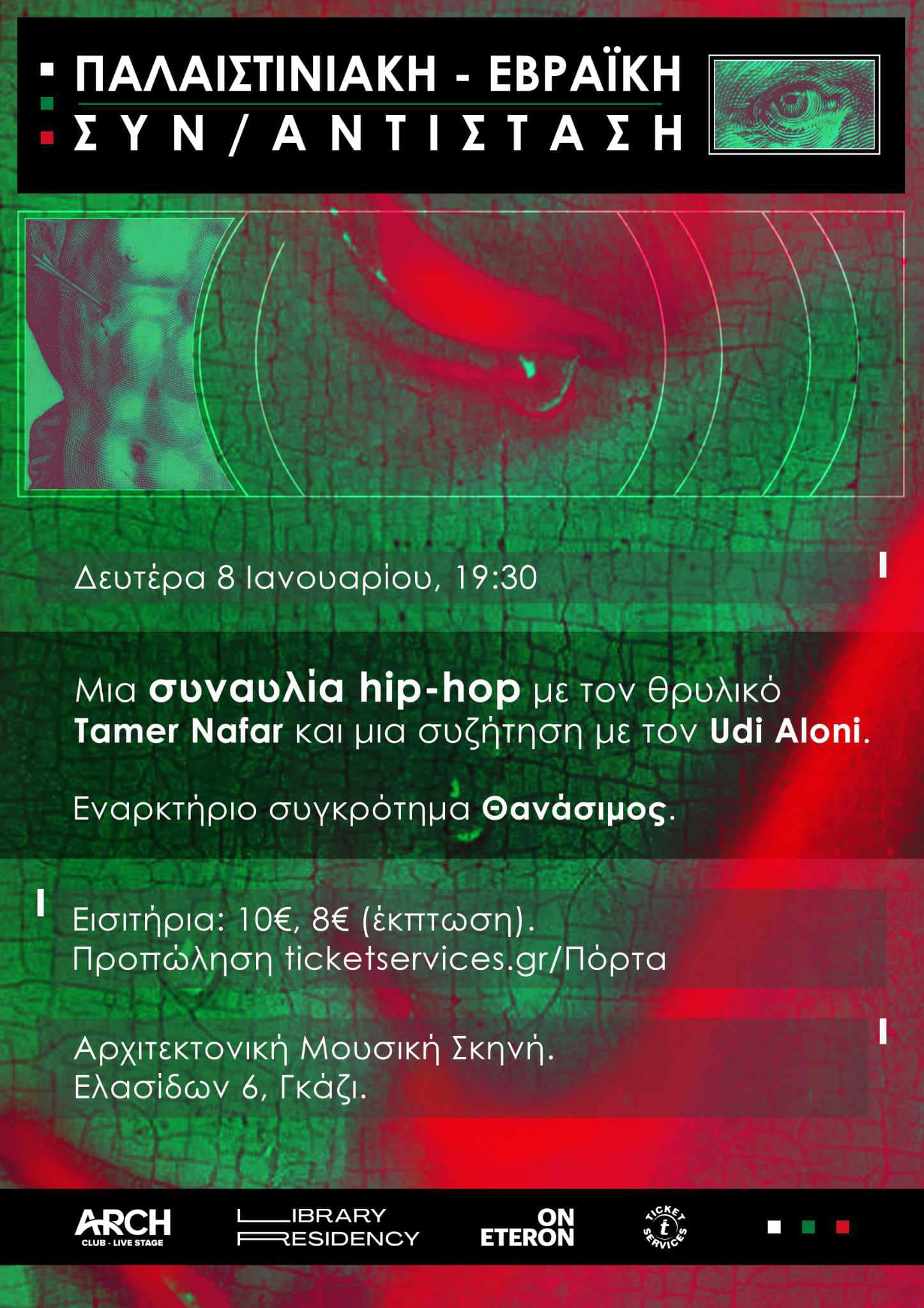Τη Δευτέρα 8 Ιανουαρίου ο Τάμερ Ναφάρ θα δώσει μια συναυλία και ο Ούντι Αλόνι μια ομιλία στην Αθήνα, στις 19.30 στον χώρο Arch Club Live Stage.