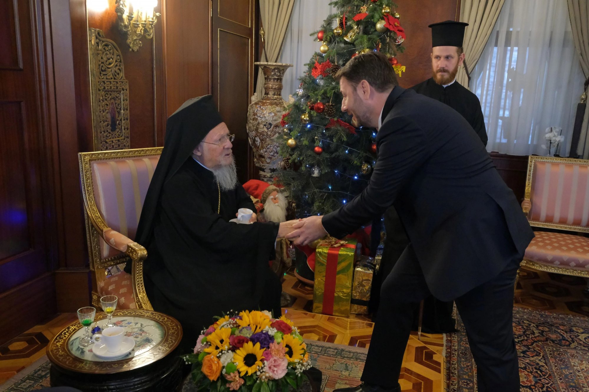 Ο Οικουμενικός Πατριάρχης Βαρθολομαίος δέχεται τις ευχές του Νίκου Ανδρουλάκη