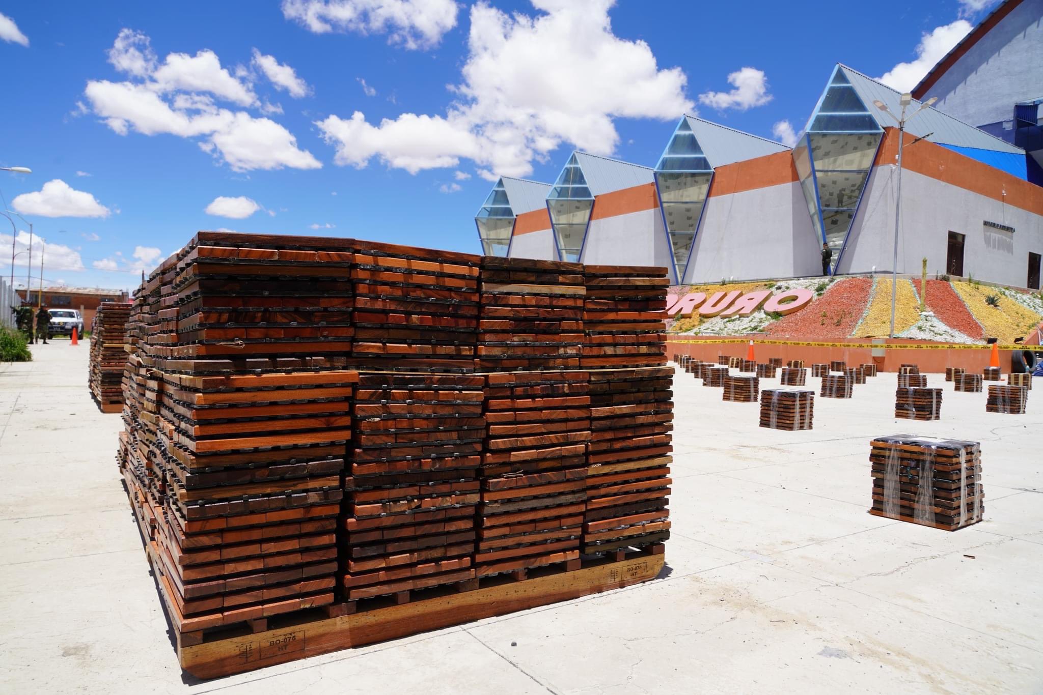 Οι βολιβιανές αρχές ανακοίνωσαν την κατάσχεση ποσότητας κοκαΐνης άνευ προηγουμένου στον δυτικό νομό Ορούρο, σχεδόν εννέα τόνους, σημειώνοντας πως η αξία της στη χώρα ανέρχεται σε περίπου 224 εκατ. δολάρια αλλά είναι σχεδόν διπλάσια στην Ευρώπη, για την αγορά της οποίας θεωρούν πως προοριζόταν (στη φωτογραφία των βολιβιανών αρχών, επάνω, τμήμα του φορτίου με την ξυλεία στην οποία ήταν κρυμμένα τα ναρκωτικά).