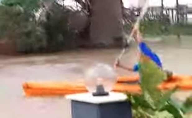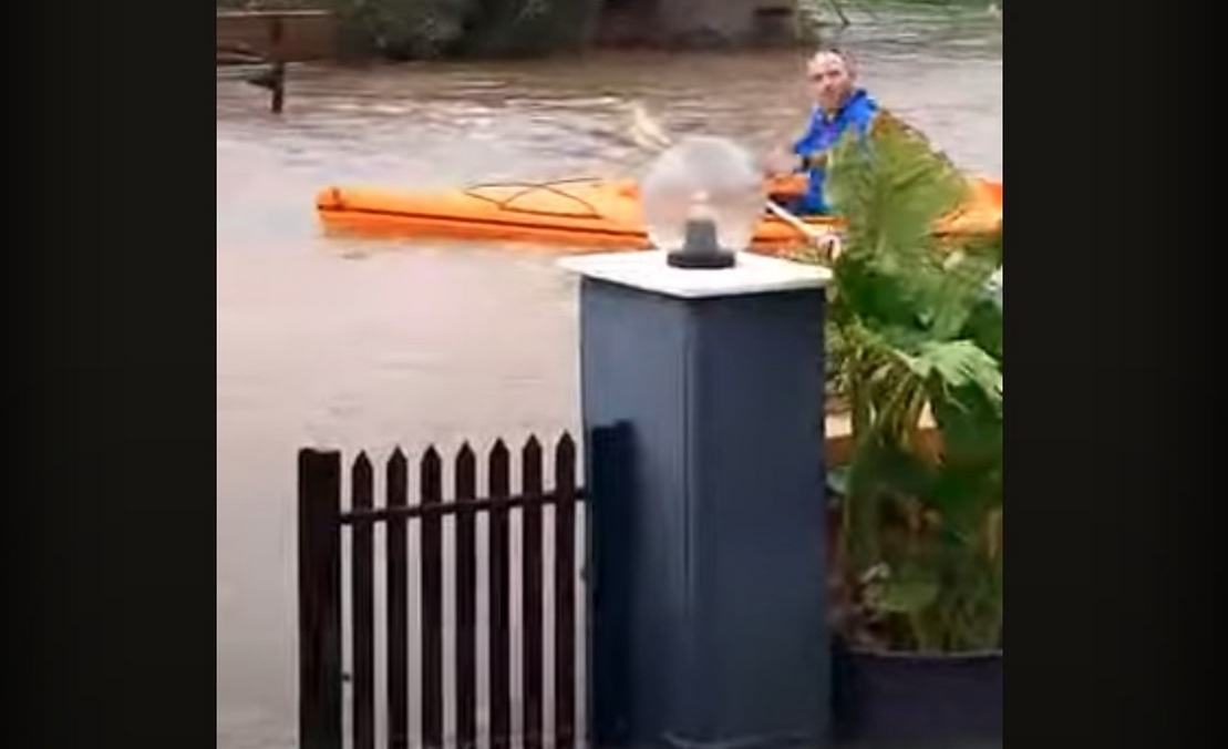 Ένας από τους κατοίκους της περιοχής, λοιπόν, εκμεταλλεύτηκε ένα ποταμάκι που είχε δημιουργηθεί σ’ έναν από εκείνα τα σημεία, και συγκεκριμένα σε ένα εκεί δρομάκι, κάνοντας παράλληλα χιούμορ.