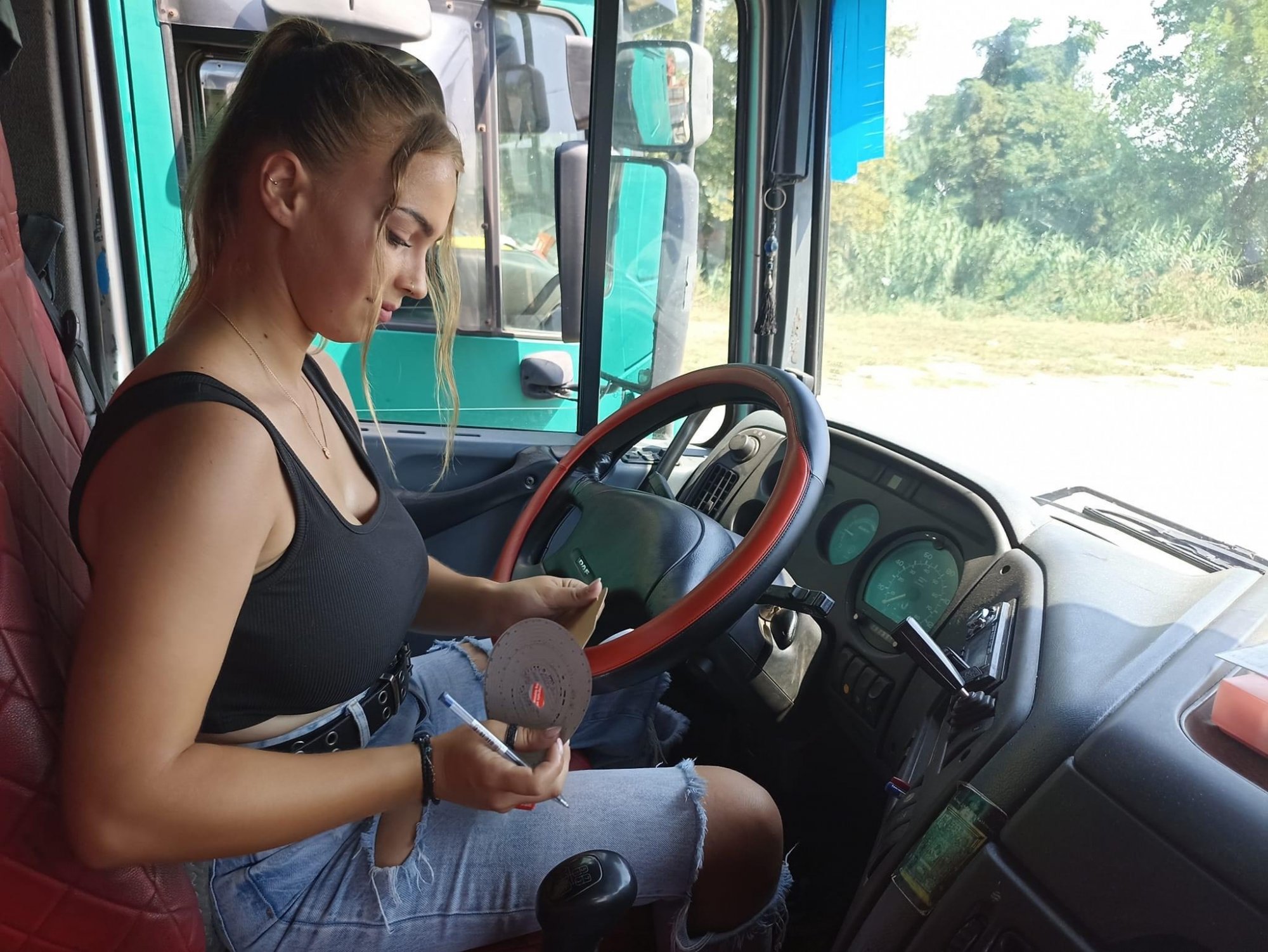 Η 22χρονη Μαρία από την Αλεξάνδρεια Ημαθίας ακολούθησε το επάγγελμα του πατέρα της κι εδώ και δύο χρόνια οδηγεί μία από τις νταλίκες της οικογενειακής επιχείρησης. «Ήξερα πάντα τι ήθελα» λέει η ίδια, γι’ αυτό παρότι πέρασε στη διοίκηση επιχειρήσεων, δεν γράφτηκε ποτέ.