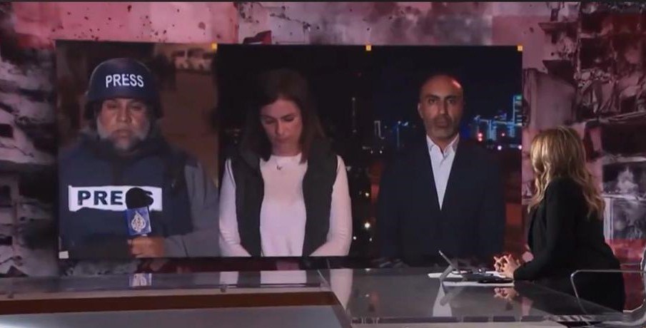 Στιγμιότυπο από το Al Jazeera, με τον Ουαέλ Νταντού να μεταδίδει από τη Γάζα