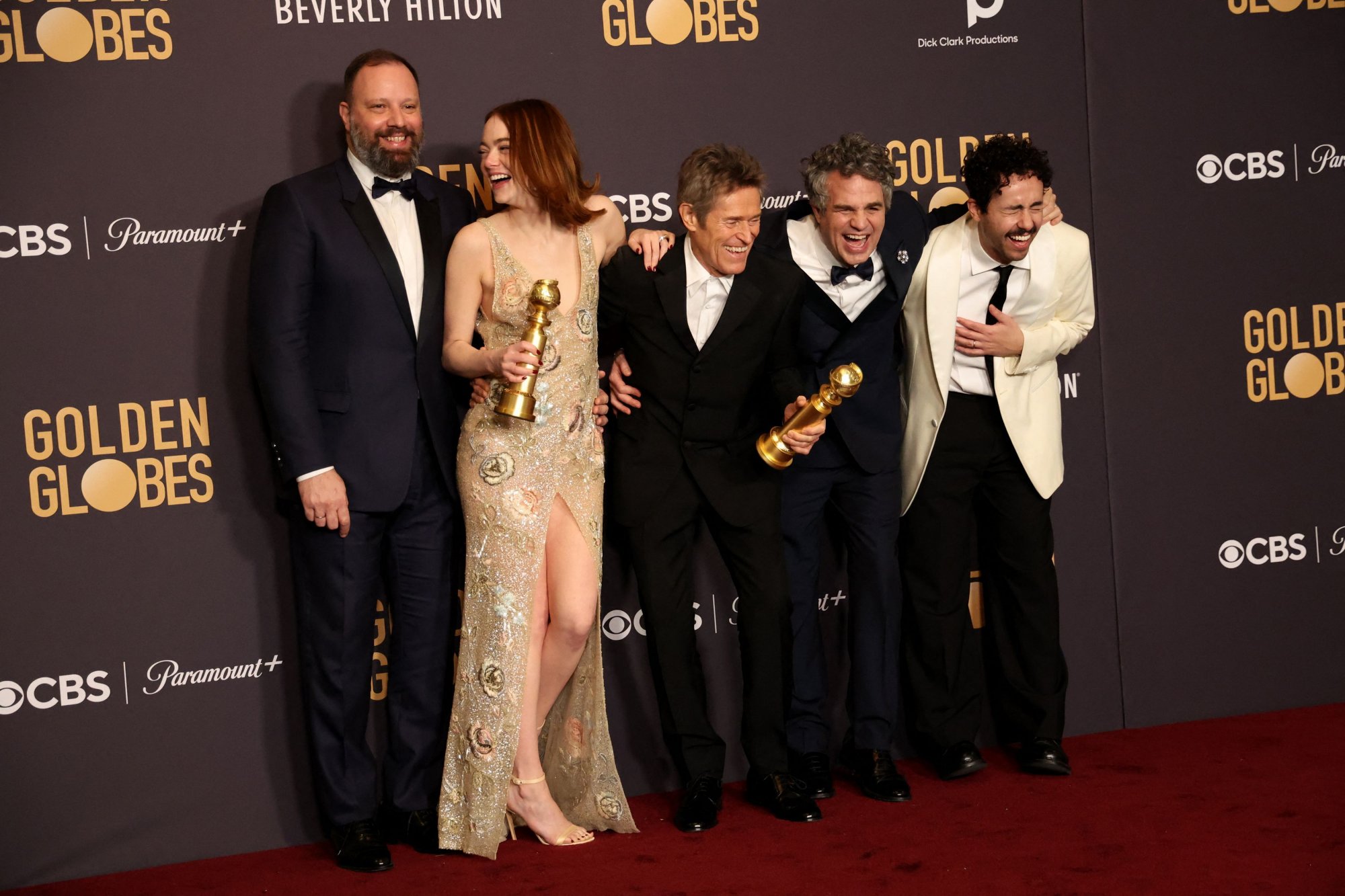 Πιο αναλυτικά, η Έμα Στόουν είπε απευθυνόμενη στους Γουίλεμ Νταφόε, Μαρκ Ράφαλο και Ράμι Γιούσεφ: «Γουίλεμ, Μαρκ, Ράμι, κάνατε κάθε μέρα μια απόλυτη χαρά και το ίδιο και το υπόλοιπο απίστευτο καστ μας».