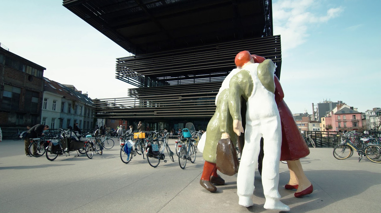 Έξω από τα φουτουριστικό κτίριο της δημοτικής βιβλιοθήκης της Γάνδης, που φέρει την ονομασία De Krook και είναι φτιαγμένη από γυαλί και μέταλλο, στέκεται ένα άγαλμα. Αυτό απεικονίζει τέσσερις γιγάντιες φιγούρες, ζωγραφισμένες σε έντονα χρώματα, που σκύβουν η μία προς την άλλη με τα κεφάλια τους σχεδόν να αγγίζουν, σαν να εξομολογούνται κάποιο μυστικό μόνο για λίγους.