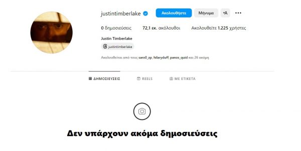 Το Instagram του Τζάστιν Τίμπερλεϊκ.