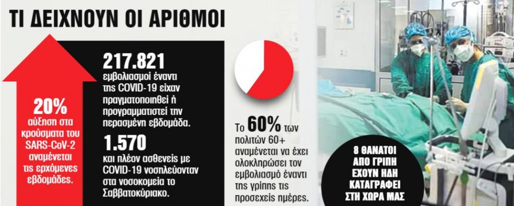 Και αυτό διότι μετά το κύμα του κορωνοϊού θα φουντώσει το ήδη εξελισσόμενο κύμα της εποχικής γρίπης παρατείνοντας την πίεση στο σύστημα υγείας.