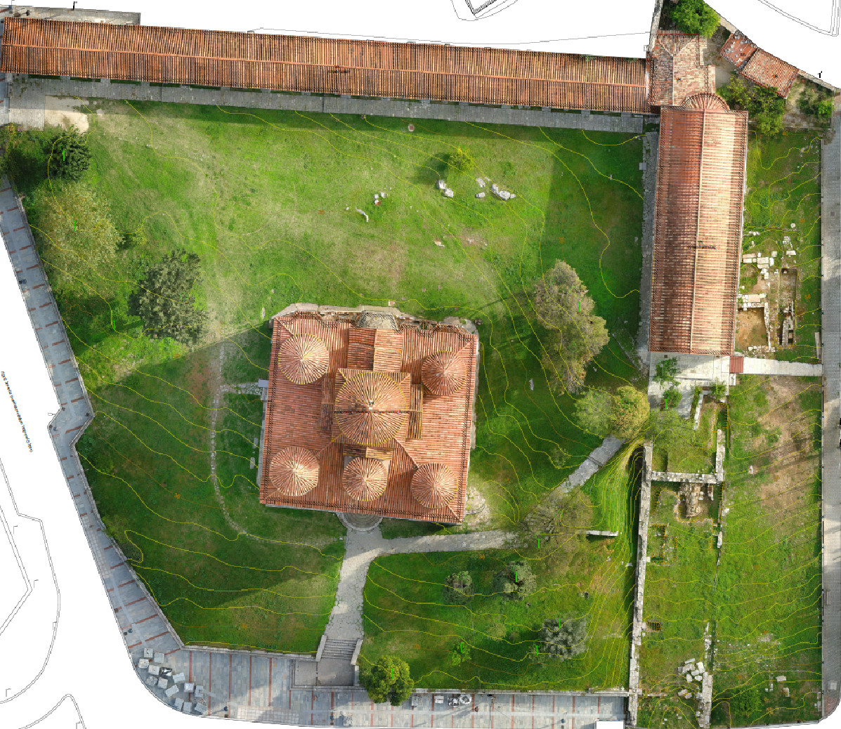 Στον περιβάλλοντα χώρο προβλέπεται να κατασκευαστεί περιμετρικά «πεζοδρόμιο» για την προστασία της βάσης του μνημείου από τα όμβρια. Θα αποχωματωθεί και αναδειχθεί ο παλαιότερος, καταχωμένος σήμερα Ναός καθώς και η είσοδος της υπόγειας στοάς, στην ίδια θέση.