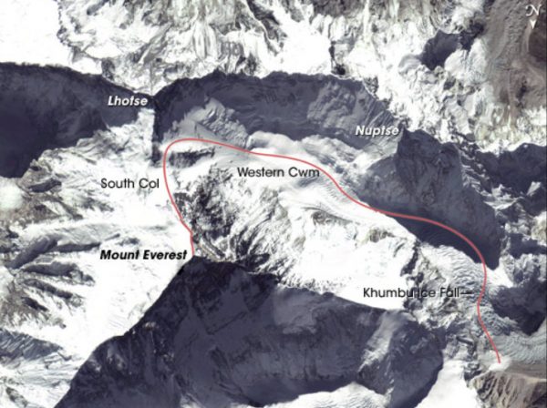 Η διαδρομή (κατά προσέγγιση) που ακολούθησαν ο Χίλαρι και ο Νοργκάι το 1953