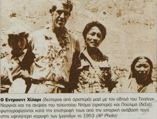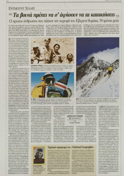*Άρθρο αφιερωμένο στον Έντμουντ Χίλαρι, τον κατακτητή του Έβερεστ, της ψηλότερης κορυφής του κόσμου. Έφερε τον τίτλο «Τα βουνά πρέπει να σ’ αφήσουν να τα κατακτήσεις» και είχε δημοσιευτεί στο φύλλο του «Βήματος» που είχε κυκλοφορήσει την Τετάρτη 16 Απριλίου 2003.