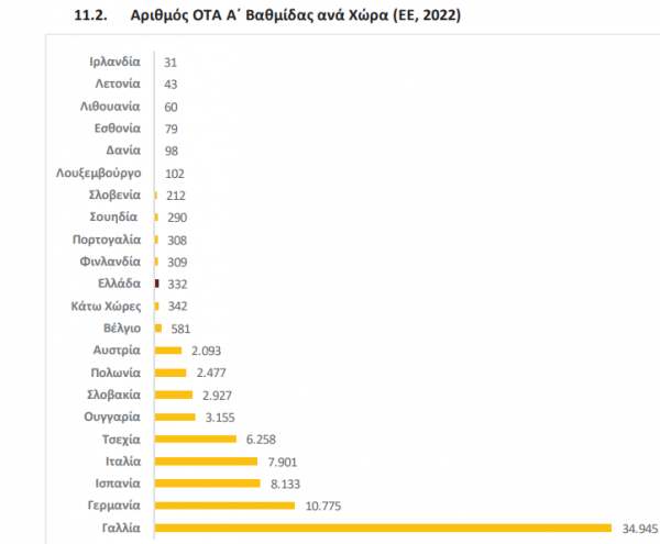 Η Ελλάδα έχει 332 Δήμους και η Γαλλία έχει 34.945. Η Ελληνική Εταιρεία Τοπικής Ανάπτυξης και Αυτοδιοίκησης, δημοσιοποίησε ενδιαφέροντα στοιχεία που αφορούν τον αριθμό των Δήμων χωρών της Ευρωπαϊκής Ένωσης και τον μέσο όρο του πληθυσμού τους.