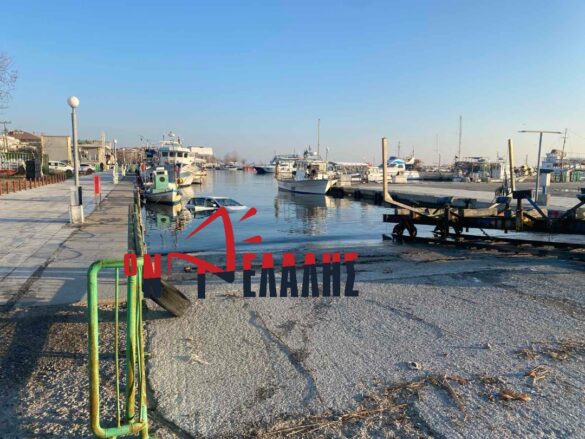 Το αυτοκίνητο που έπεσε στη θάλασσα στην περιοχή του αλιευτικού καταφυγίου της Παραλίας Κατερίνης