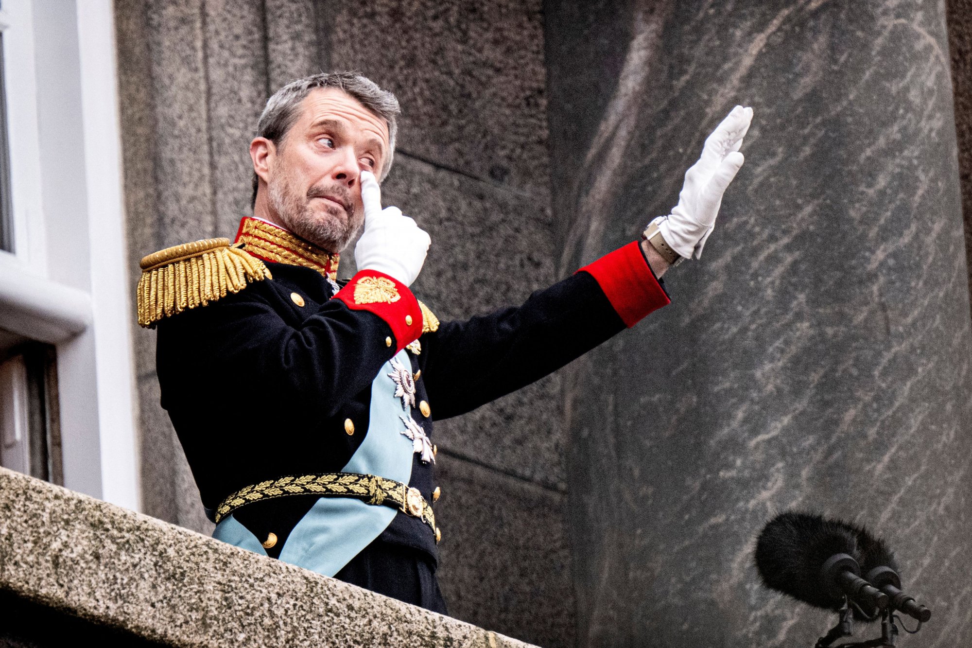 Τον βασιλιά, ο οποίος κάποια στιγμή δάκρυσε και εθεάθη να σκουπίζει τα μάτια του. Στη συνέχεια στο μπαλκόνι τον συνάντησαν η αυστραλιανής καταγωγής σύζυγός του, Μαίρη, 51 ετών, η οποία είναι πλέον βασίλισσα, τα παιδιά τους Κρίστιαν, 18 ετών, ο οποίος είναι ο διάδοχος του θρόνου, η πριγκίπισσα Ιζαμπέλ, 16 ετών και τα δίδυμα πριγκίπισσα Ιωσηφίνα και πρίγκιπας Βικέντιος, 13 ετών.