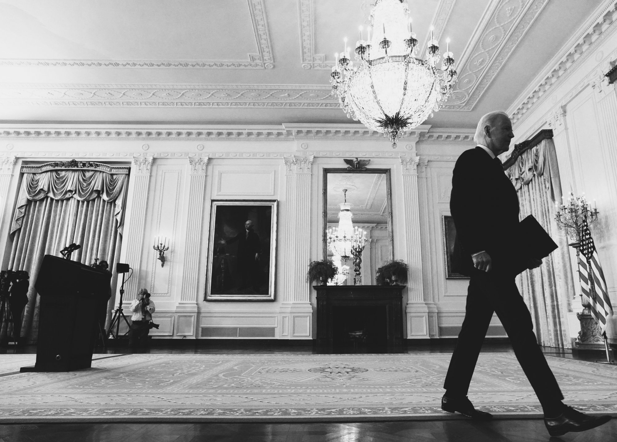 Ο Πρόεδρος των ΗΠΑ Τζο Μπάιντεν συνοδεύεται από τον συνταγματάρχη Γκρέγκορι Άνταμς, στην 89η πτέρυγα μάχης, Βάση Άντριους, καθώς ο Πρόεδρος Μπάιντεν επιβιβάζεται στο Air Force One, 12 Ιανουαρίου 2024.