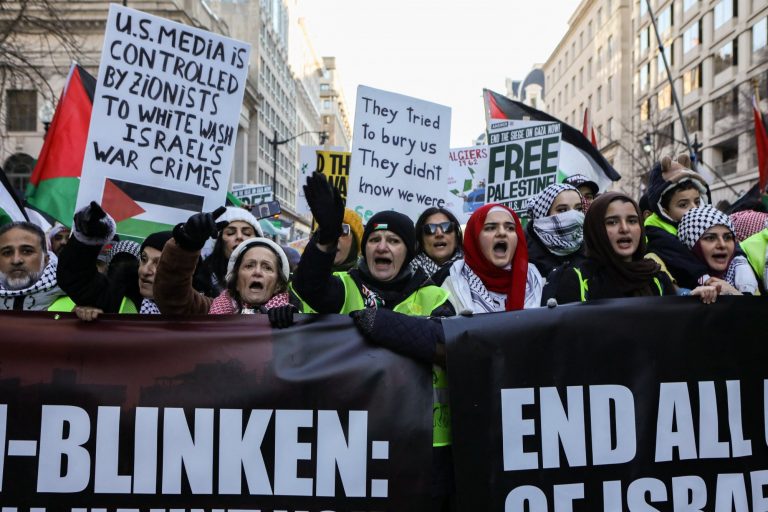 Σε μια από τις μεγαλύτερες φιλοπαλαιστινιακές διαδηλώσεις που έχουν γίνει μέχρι σήμερα στην αμερικανική πρωτεύουσα, οι διαδηλωτές επανέλαβαν την έκκλησή τους προς τον πρόεδρο των ΗΠΑ Τζο Μπάιντεν να σταματήσει να στέλνει όπλα στο Ισραήλ και φώναζαν «ελεύθερη Παλαιστίνη» και «κατάπαυση του πυρός τώρα».