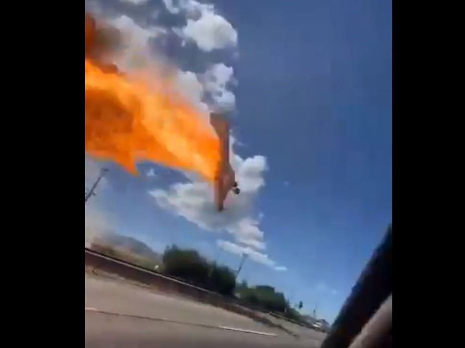 Σε πλάνα που κυκλοφόρησαν στα social media, το φτερό του αεροσκάφους φαίνεται να κόβει ηλεκτρικά καλώδια και αμέσως μετά να χάνει απότομα ύψος.