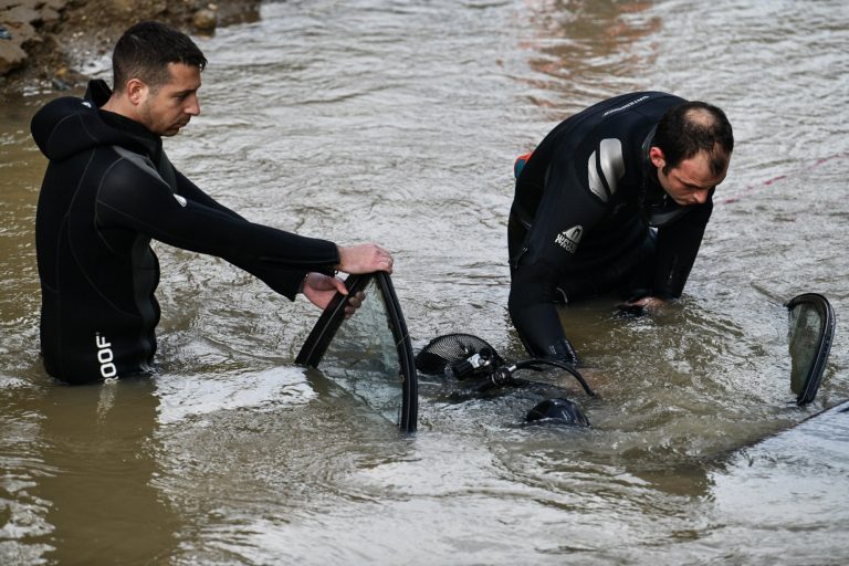 Δύτες και πυροσβέστες με βάρκες αλλά και σκαπτικά μηχανήματα, συνεχίζουν να αναζητούν οποιοδήποτε ίχνος του αγνοούμενου οδηγού