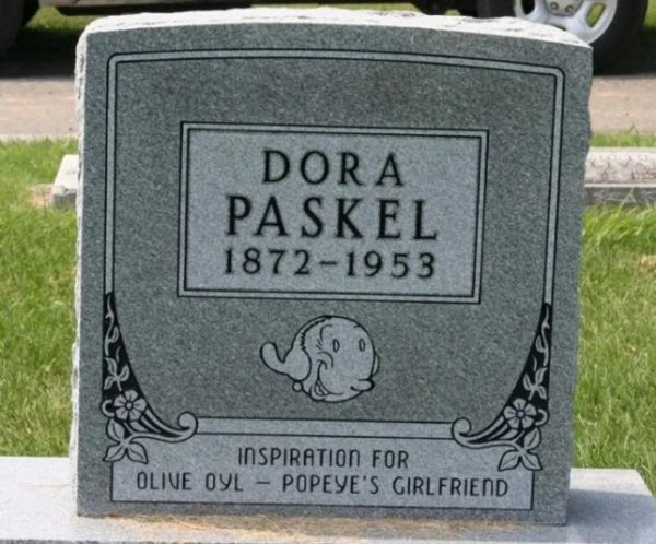Η Όλιβ βασίστηκε στην Dora Paskel, ιδιοκτήτρια καταστήματος τροφίμων στο Τσέστερ, που λέγεται ότι ντυνόταν παρόμοια με την Όλιβ και ήταν επίσης ψηλή και λεπτή. Και στον δικό της τάφο έχει χαραχθεί το πρόσωπο της Όλιβ.
