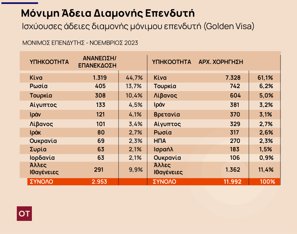 Σύμφωνα με τα στοιχεία του υπουργείου Μεταναστευτικής Πολιτικής, κατά το διάστημα από τον Ιανουάριο µέχρι και τον Νοέµβριο του 2023 οι άδειες που είχαν χορηγηθεί προς επενδυτές από τη Βρετανία σηµείωσαν αύξηση κατά 77,8%, από 208 σε 370.