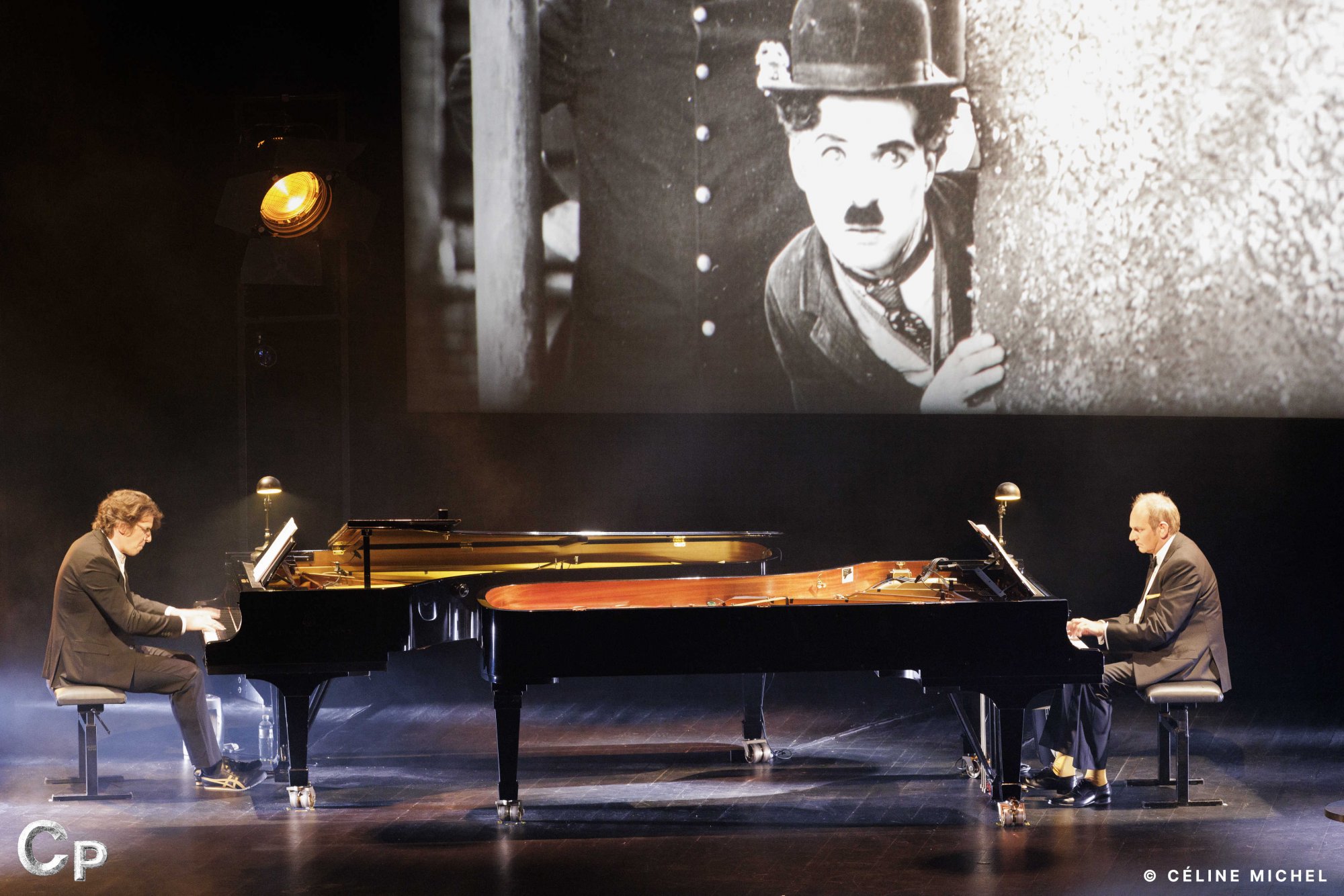 Μέσα από την προβολή εικόνων της καριέρας και της ζωής του, και υπό τον ήχο των δύο πιάνων, οι θεατές ταξιδεύουν στην ατμόσφαιρα της εποχής των διαχρονικών αριστουργημάτων της έβδομης τέχνης για να βιώσουν την εξίσου σπάνια μουσική ιδιοφυΐα του Τσάρλι Τσάπλιν.