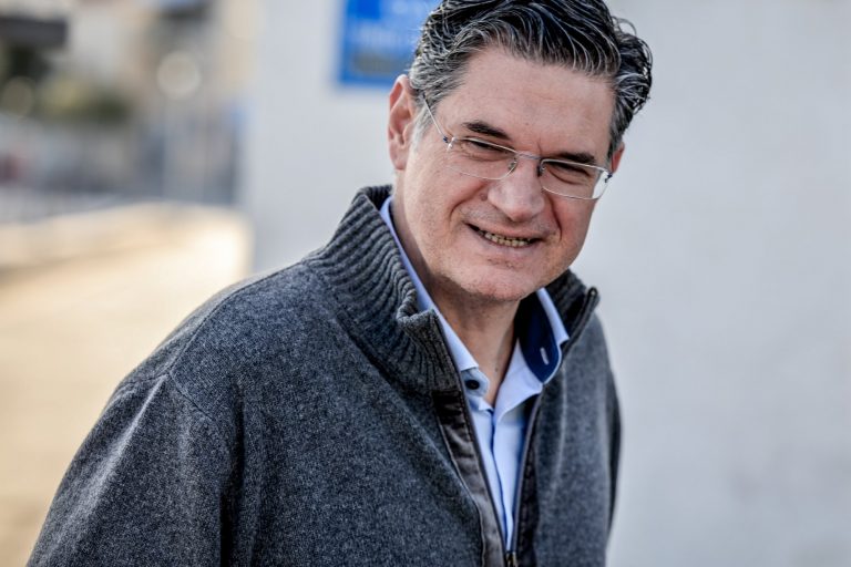 Ο Νίκος Παππάς κατά την άφιξή του στο νησί του Αργοσαρωνικού