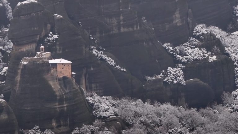 Μετέωρα: Η μοναστική πολιτεία ντύθηκε στα λευκά και οι εικόνες είναι εντυπωσιακές