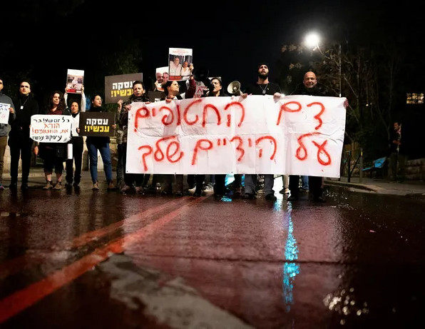 Χθες βράδυ, συγγενείς ομήρων και συμπαθούντες συγκεντρώθηκαν κοντά στην επίσημη κατοικία του ισραηλινού πρωθυπουργού Νετανιάχου στην Ιερουσαλήμ για να απαιτήσουν να συναφθεί συμφωνία ώστε να αφεθούν ελεύθεροι.
