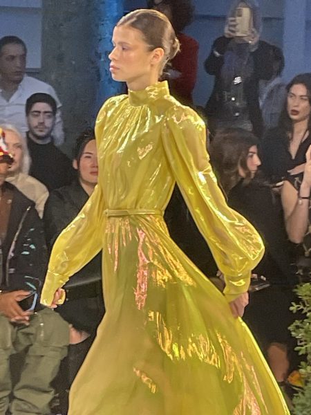 Η διεθνής σχεδιάστρια Σίλια Κριθαριώτη παρουσίασε τη συλλογή Celia Kritharioti Couture για την Άνοιξη-Καλοκαίρι 2024 με τη θρυλική Ναόμι Κάμπελ να ανοίγει το σόου, τη Candice Snawepoel να κερδίζει τα βλέμματα και την Coco Rocha να παρουσιάζει μια καθηλωτική performance μέσα σε κίτρινο φόρεμα που σμίλευε τη φιγούρα της -μια ηλεκτρισμένη γοργόνα έτοιμη να αφήσει το υγρό στοιχείο για τα μεγάλα βουλεβάρτα των πόλεων.