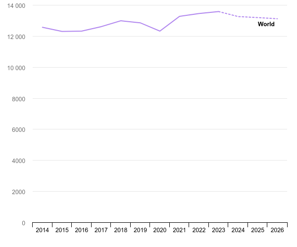 Η παραγωγή ηλεκτρικού ρεύματος από γαιάνθρακα αναμένεται να μειώνεται κατά μέσον όρο κατά 1,7% ανά έτος ως το 2026, αύξηση 1,6% το 2023, κυρίως χαμηλής υδροηλεκτρικής παραγωγής σε Ινδία και Κίνα.