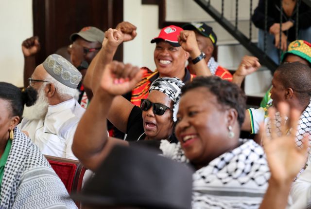 Υποστηρικτές των Παλαιστινίων πανηγυρίζουν για την απόφαση του Διεθνούς Δικαστηρίου στην Πρετόρια της Νότιας Αφρικής