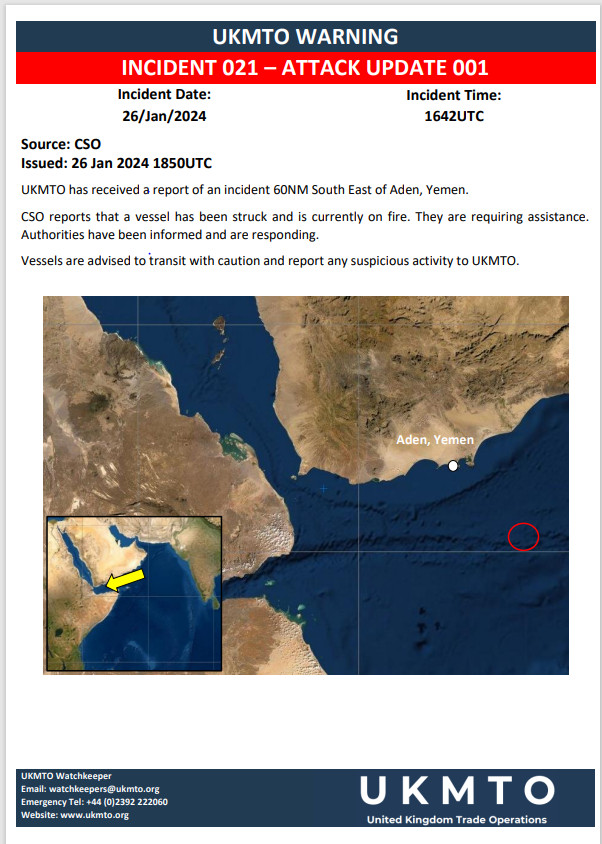 Η Trafigura δήλωσε ότι ένας πύραυλος έπληξε το δεξαμενόπλοιο καυσίμων Marlin Luanda καθώς διέσχιζε την Ερυθρά Θάλασσα. Η τελευταία λεπτομέρεια είναι πως το δεξαμενόπλοιο μετέφερε ρωσική νάφθα που αγοράστηκε κάτω από το ανώτατο όριο τιμών σύμφωνα με τις κυρώσεις της G7, όπως δήλωσε εκπρόσωπος της Trafigura.