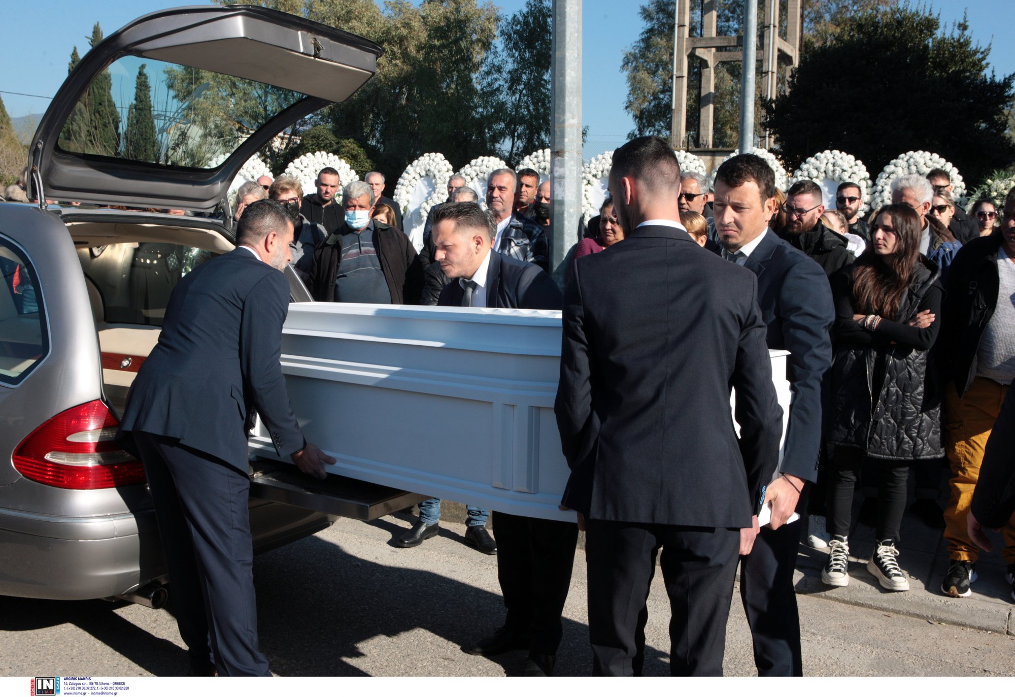 Νωρίτερα, η μητέρα του Μπάμπη είχε φτάσει στην εκκλησία υποβασταζόμενη από τις δύο κόρες της και αδερφές του 31χρονου.